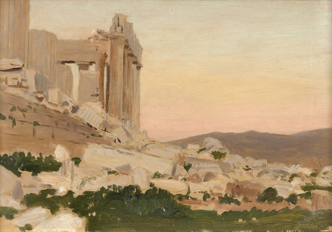 5. Lockwood de Forest (1850-1932), The Parthenon, 1878, oil and pencil on paper laid down on canvas, 9 7/8 x 14 ½ inches